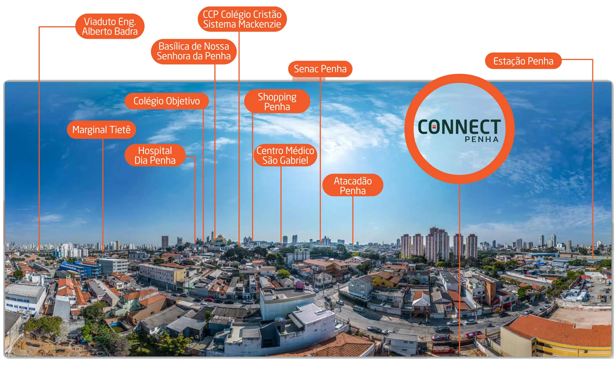 Localizado em uma das melhores regiões da Penha, o Connect Penha está em um ponto privilegiado, com fácil acesso a tudo o que você precisa no dia a dia. E mais: por ser um dos últimos empreendimentos da região, oferece uma vista livre e permanente, garantindo paisagens incríveis e uma sensação de amplitude que vai acompanhar você por toda a vida.