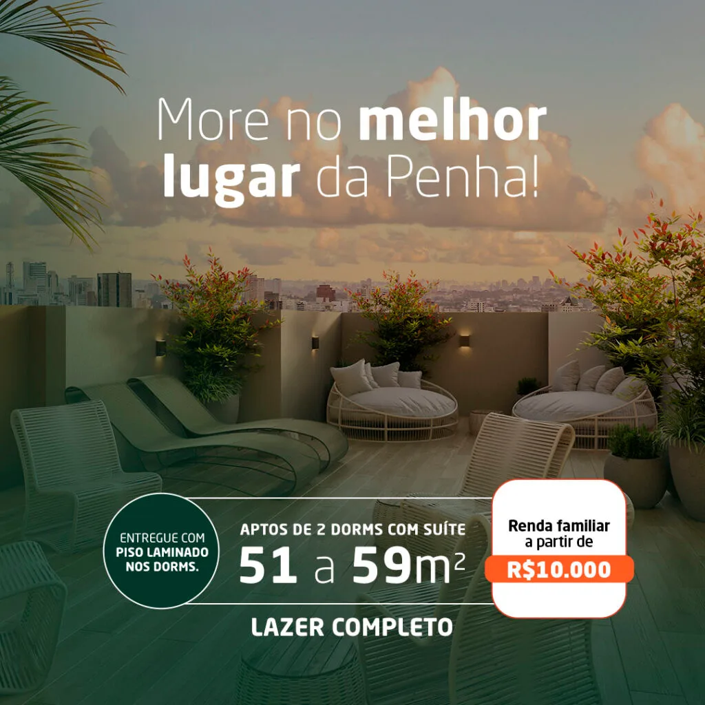 Com unidades modernas e bem planejadas, oferecemos espaços otimizados para todas as fases da sua vida. A poucos metros do metrô Penha, você terá acesso rápido a toda a cidade, além de uma infraestrutura completa de lazer e conveniência.